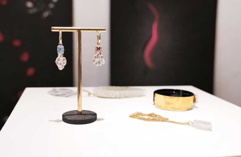 Earrings “Pluie rose ” & “Petite pluie d’éclats “cuff and pendant ,2025